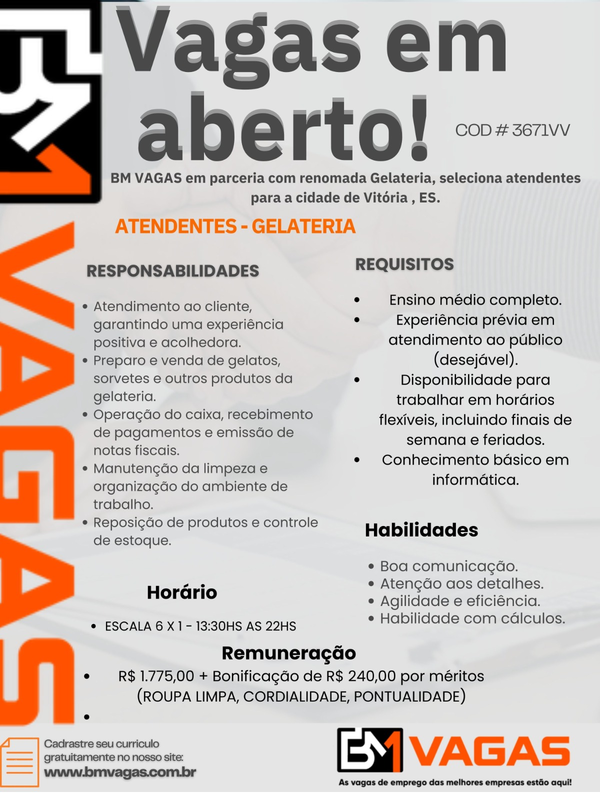 Disponibilidade para trabalhar em horários flexíveis, incluindo finais de semana e feriados.
