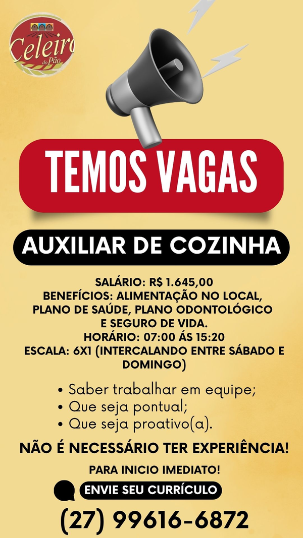 🥖✨ PADARIA CELEIRO DO PÃO ESTÁ CONTRATANDO! ✨🥖