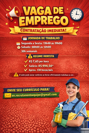 Exibir dicasCuidado com ofertas de emprego que solicitam o pagamento de taxa, exame admissional ou compra de certificados de cursos.