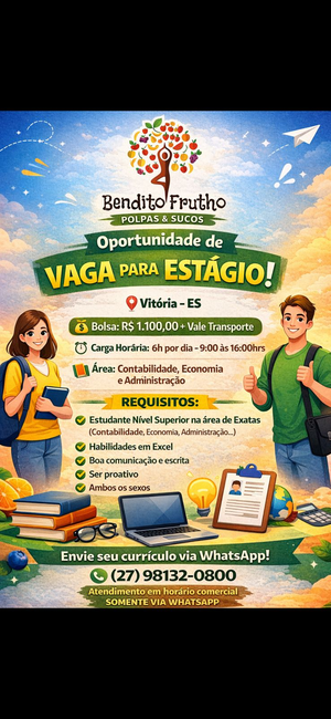 Carga Horária: 6h por dia -9:00 às 16:00hrs