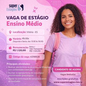 Esta é uma oportunidade única para desenvolver habilidades essenciais em atendimento na área da saúde e gestão de agendas, adquirindo experiência valiosa em comunicação com pacientes, organização de consultas médicas, atendimento digital, relacionamento humanizado, uso de sistemas de agendamento, controle de horários e rotinas administrativas de clínicas de saúde, em um ambiente que valoriza o profissionalismo, a confidencialidade e o desenvolvimento de jovens interessadas em construir uma carreira na área da saúde e atendimento ao público.