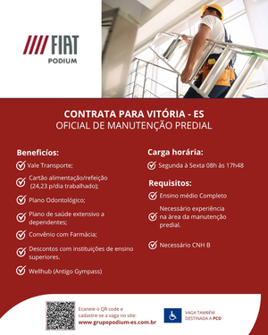 Necessário experiência na área da manutenção predial.