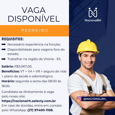 Encontrou algum problema? Denuncie esta vaga e nos ajude a manter a qualidade do portal