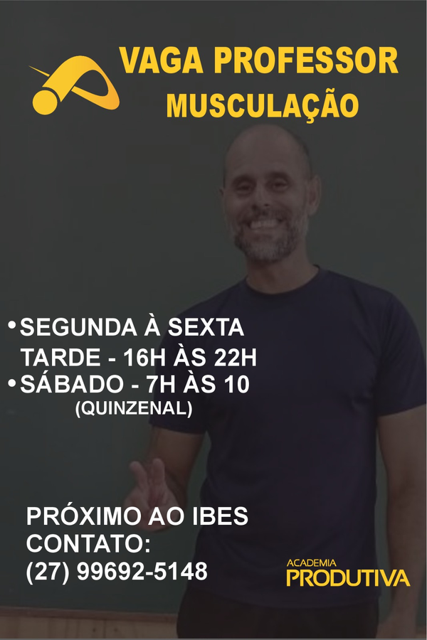 Academia com mais de 34 anos de funcionamento. Preciso de professor atencioso que acompanhe os clientes na execução dos exercícios.
