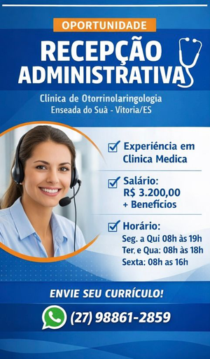 📢 VAGA: RECEPÇÃO ADMINISTRATIVA