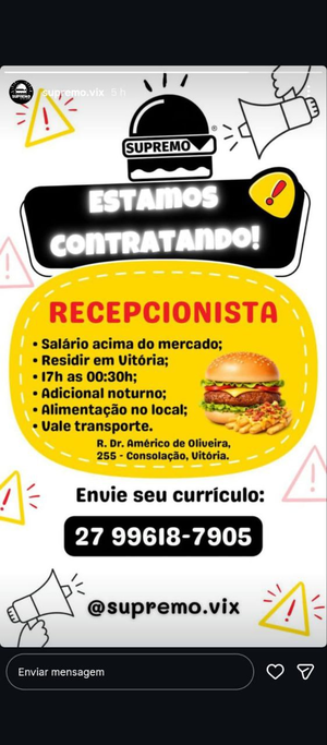 Exibir dicasCuidado com ofertas de emprego que solicitam o pagamento de taxa, exame admissional ou compra de certificados de cursos.