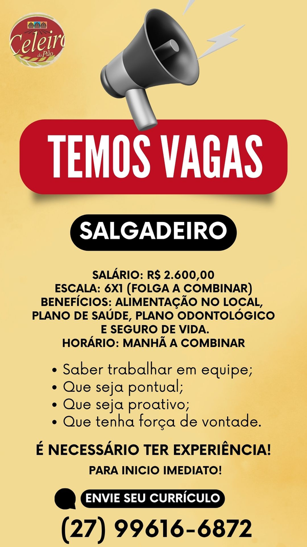 🥖✨ PADARIA CELEIRO DO PÃO ESTÁ CONTRATANDO! ✨🥖